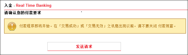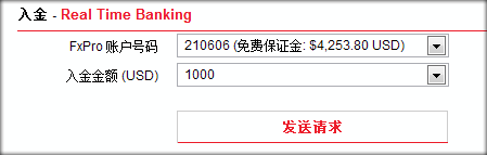 第三步:选择"Real Time Banking" 入金帐号和入金金额